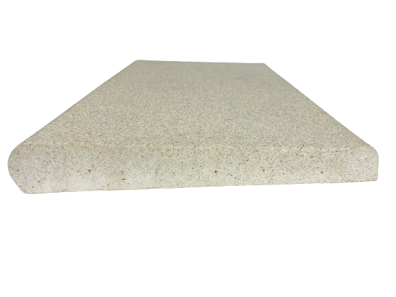 Het voordeel van een randsteen met een afgeronde rand is dat het erg prettig is om in of uit te stappen zonder dat je je hard kunt stoten. Doordat de rand licht oversteekt, verbergt de rand de cementlaag of andere vorm van bevestiging.
