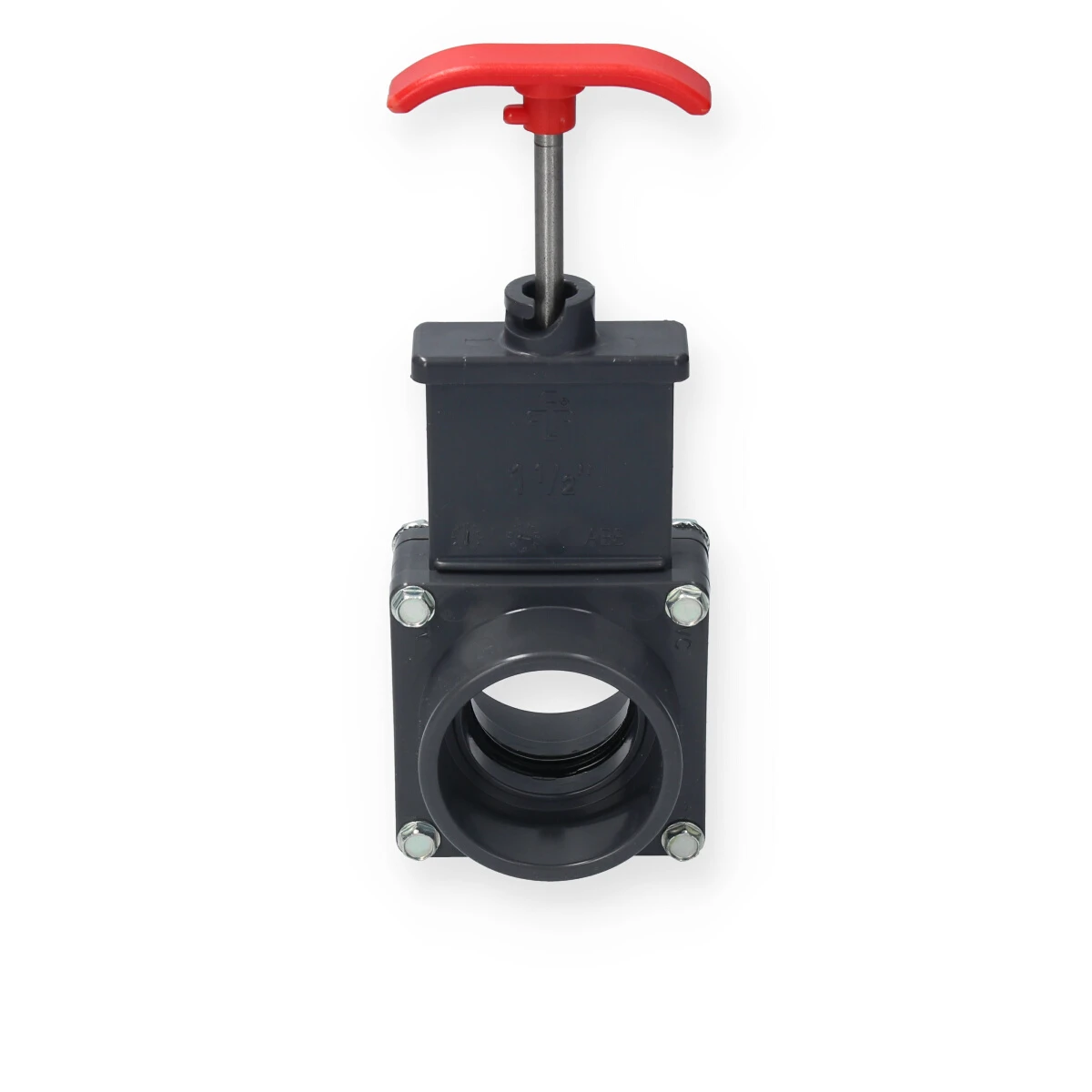 De schuifafsluiter kan met behulp van handbediening omhoog of omlaag geduwd worden. Hierdoor sluit de schuifklep de leiding af of opent de schuifklep de leiding. Dit biedt controle over de doorstroming van het water. Hierdoor kun je bepalen of water door dient te stromen naar bijvoorbeeld de warmtepomp of niet. Een handige oplossing op meer controle over jouw zwembad waterstroom. Ondanks de druk in de leiding blijft een schuifafsluiter makkelijk en goed handelbaar.